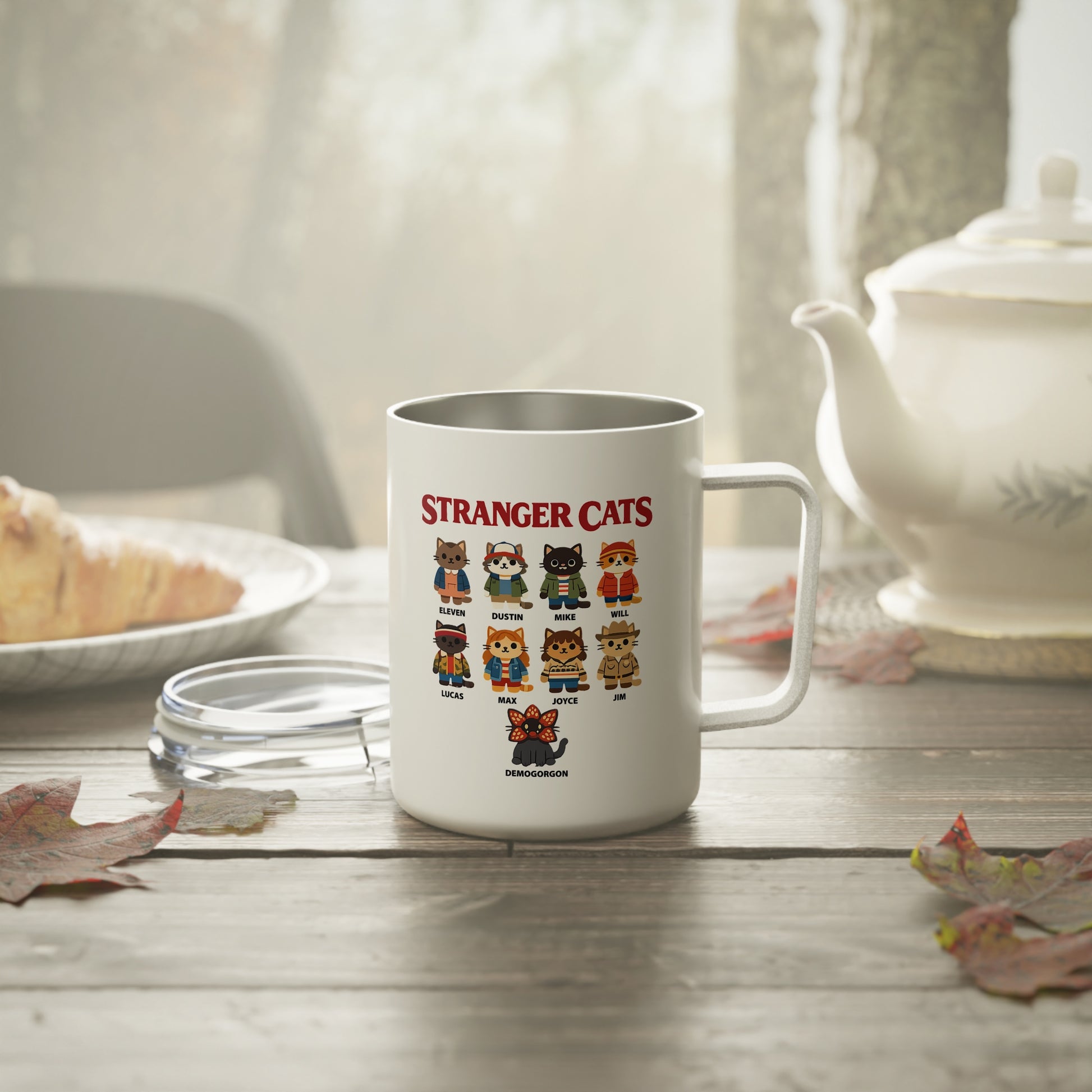 Insulated Mug — "Stranger Cats" Cute Stranger Things Cat Characters 10oz Travel Coffee Tumbler